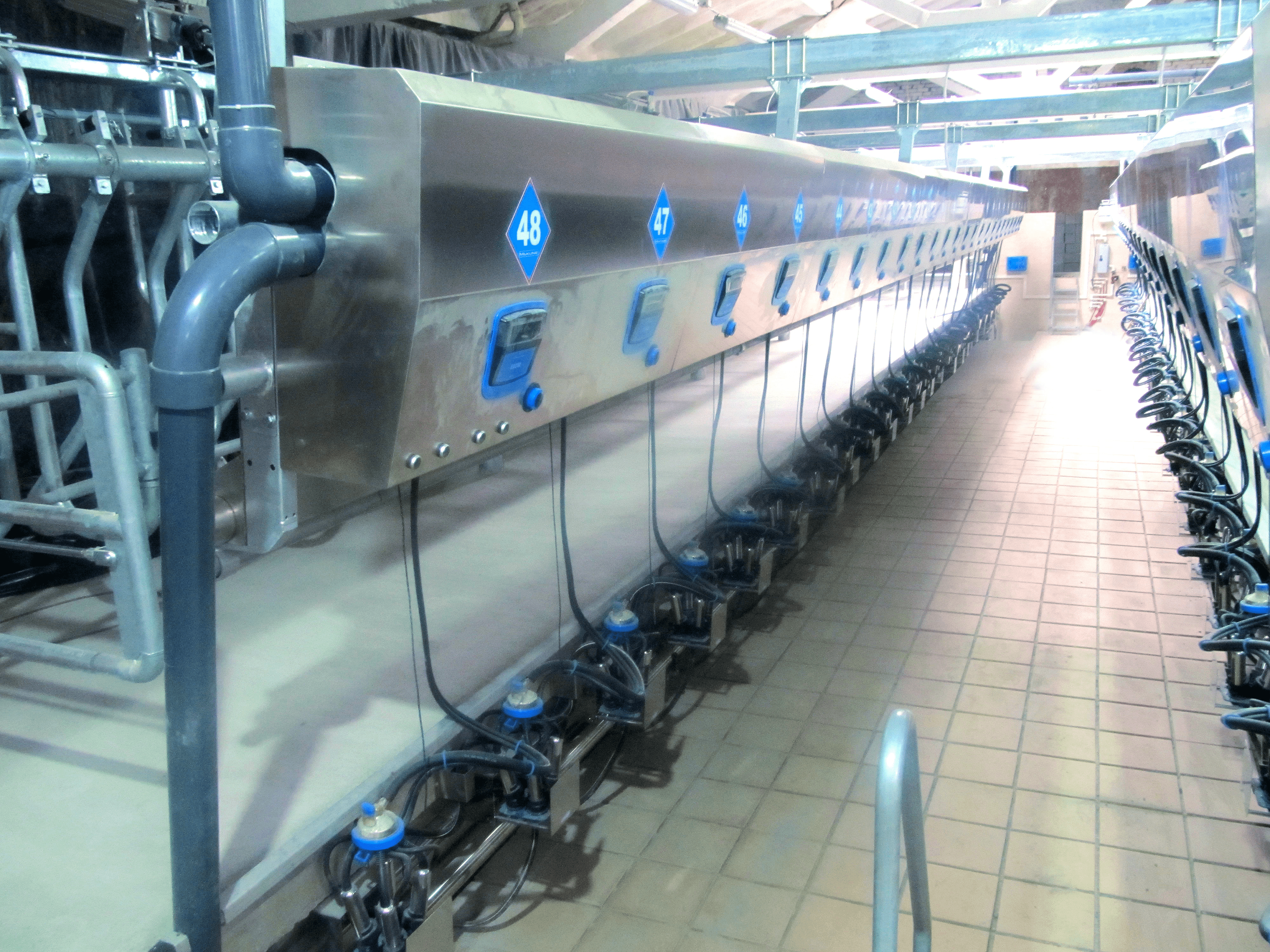Это доильный зал 24+24 на 400 коров, с передним выходом Heavy Duty обеспечивает комфорт для животных различных размеров.