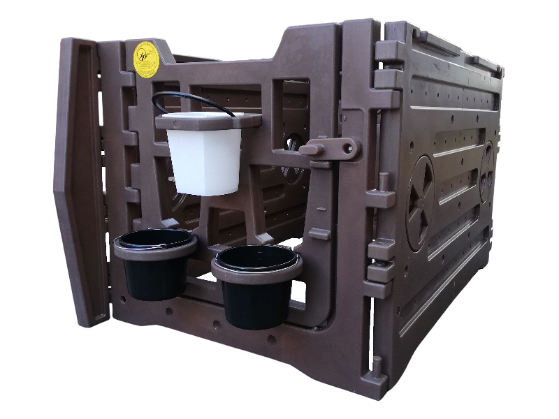 Бокс и все элементы бокса, кроме держателя фиксатора, изготовлены из полимерных материалов, стойких к воздействию климатических факторов окружающей среды, а также к воздействию отходов жизнедеятельности животных.