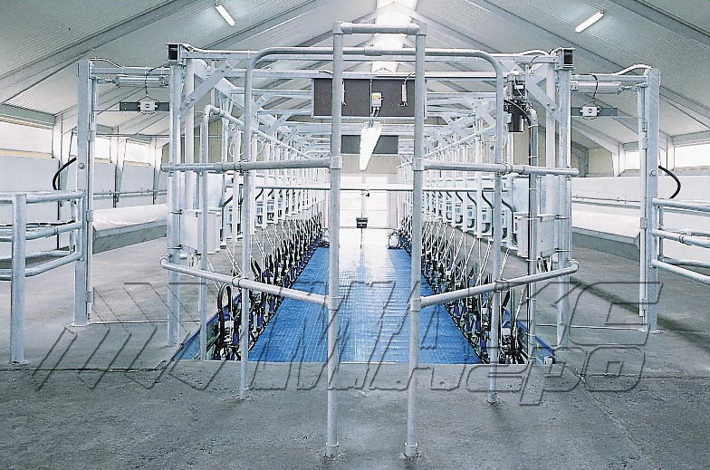 ​Доильные залы «Ёлочка с подъёмным барьером» компании « SAC » могут строиться с учетом особых требований – от самых простых, до полностью укомплектованных залов, включающих в себя подъемные полы, счетчик молока, индикатор мастита или систему управления.