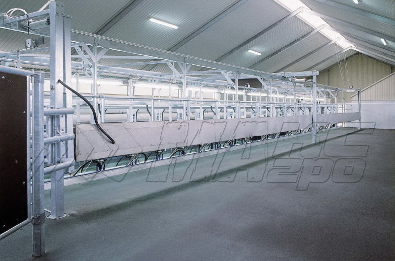 Доильные залы "Ёлочка с подъёмным барьером" сочетают в себе качества доильных залов "Ёлочка" 30° с высокой производительностью. Одно из наибольших преимуществ этих залов в свободном проходе коров на доильные места, в сочетании с подъёмным барьером, который позволяет осуществлять быстрый выход всех коров после дойки одновременно. Всё это сокращает время для заполнения зала животными , делая такой зал идеальным для больших стад.