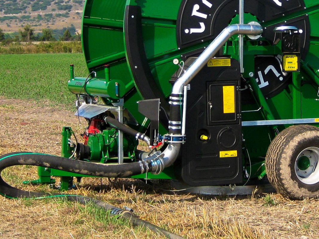 Комплект двигателя может быть установлен на любую модель. Хорошо подходит, если машина работает с грязной водой или суспензией. Полезно при высоких скоростях и малых нормах осадков. Можно использовать как ВОМ для наматывания шланга.