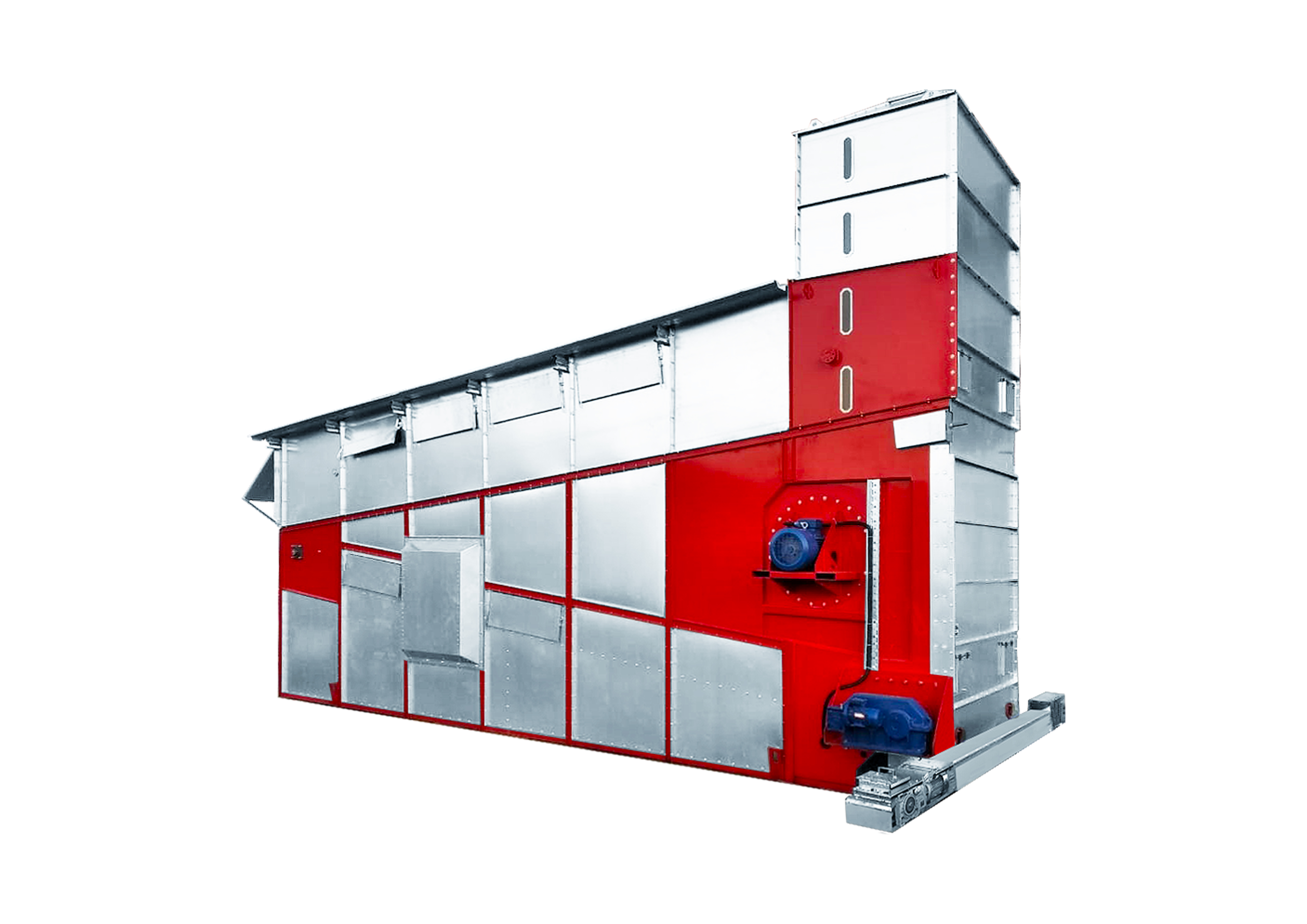 Усиленные балки корпуса с теплостойким окрашиванием, жесткий сварной каркас конвейерных зерносушилок ATM Universal обеспечивают прочность и неизменность конструкции зерносушилки на протяжении всего срока ее эксплуатации.